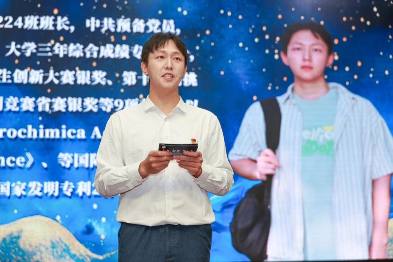 聚势而“生”。新能源材料与器件224班李文斌、高分子材料与工程223班黄银诗、化学(师范)221班辛雨宸分别分享了在专业学习、科研攻坚、职业规划过程中的心路历程,他们鼓励每一位新生要充分利用学院学科资源平台,主动参与科研项目,在实践中找准方向、锤炼本领、实现突破。化院8名优秀校友通过视频的方式分享了学习成长的宝贵经历以及在职业发展中的经验与感悟。